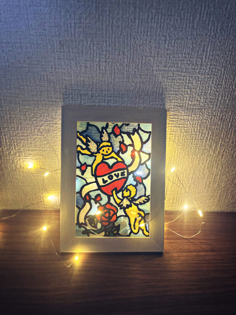 ▼友達とワイワイつくったステンドグラス