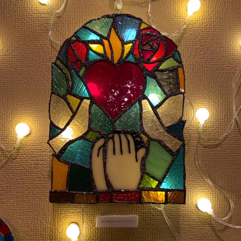 ▼初めてのグラスアート作品「あつまる光たち」