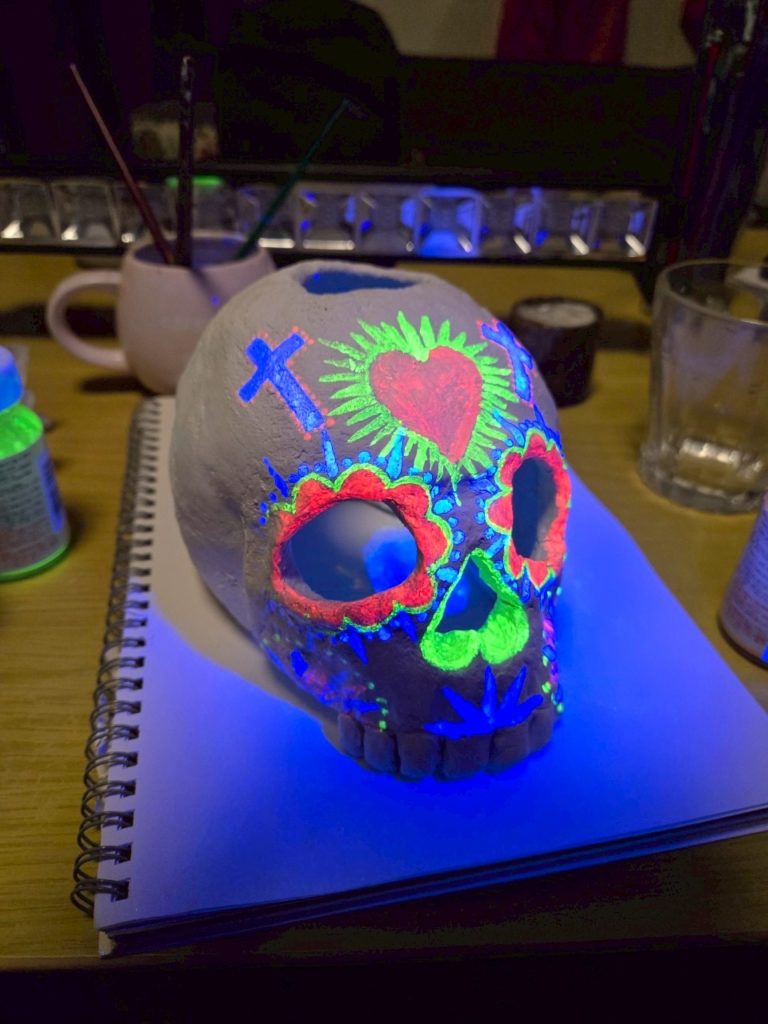 ↓ブラックライトで照らすとメキシカンスカルに