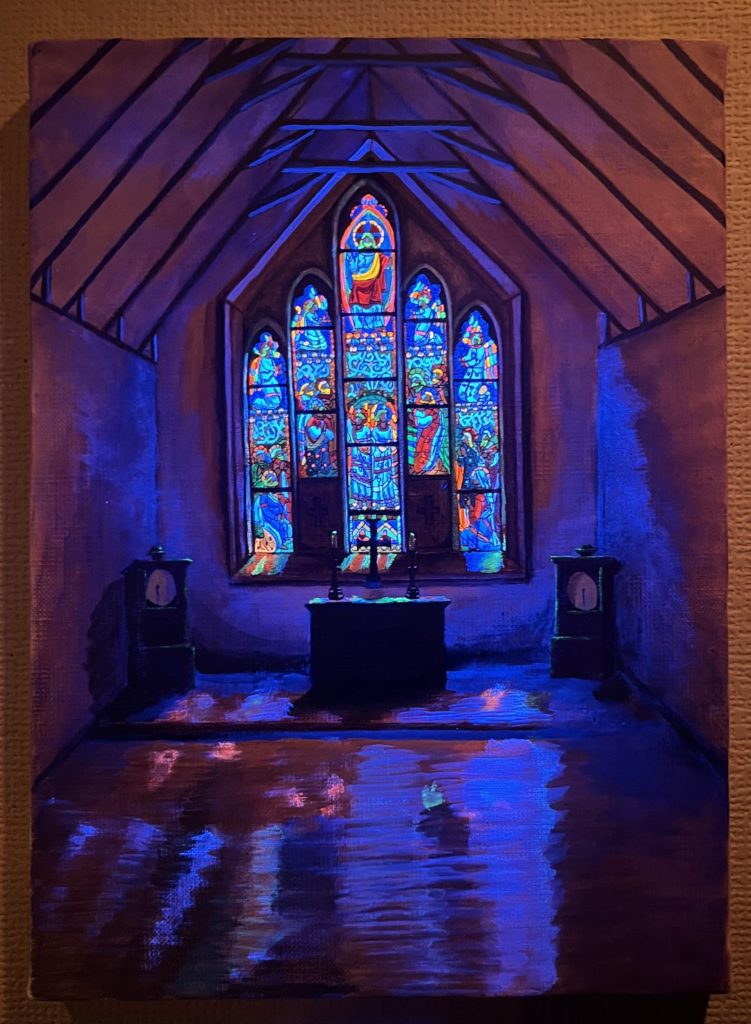 ブラックライトで光る作品は、「あなたの手で完成させる」という意味を込めています。